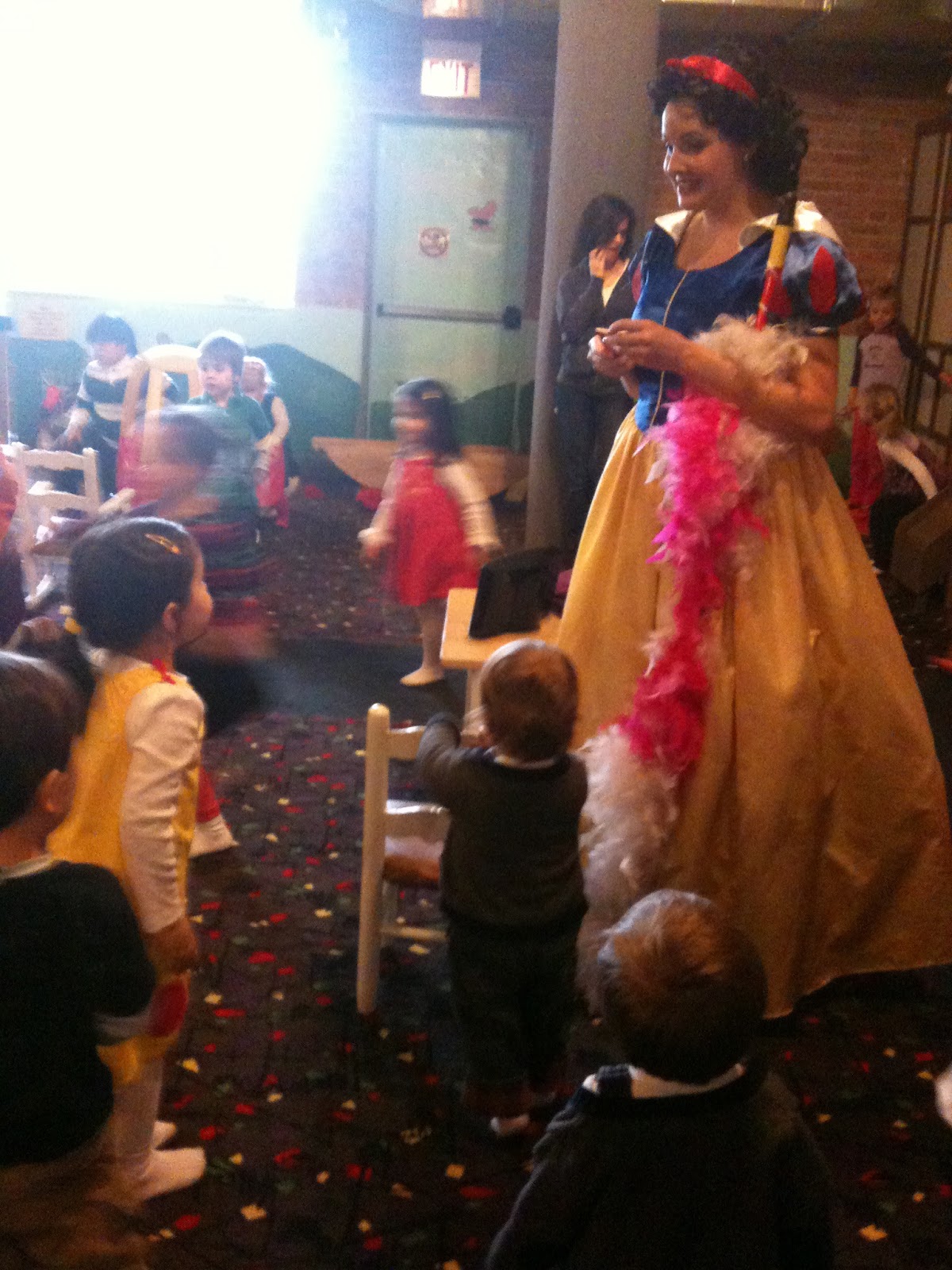 Dylan (far right, in blue) participated in a marching game for a very short while. He was "over" Snow White within a minute, though.